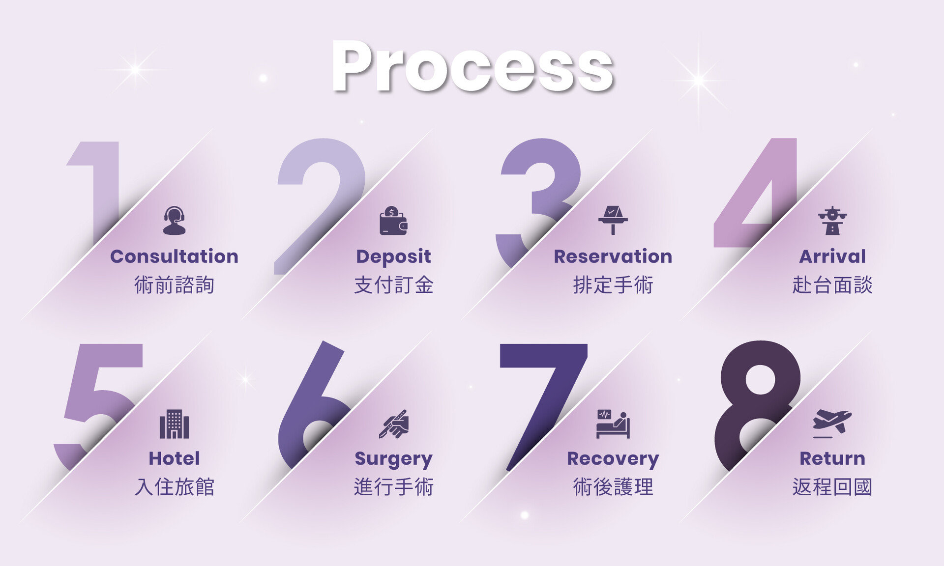 After consultation and assessment to confirm the surgical procedure, targeted area, and associated costs. Our customer service will arrange an appointment with doctor and you can discuss the surgery date and necessary details.We will also provide information about bank account for the deposit. You need to make the surgery deposit to secure the date and proceed with the subsequent arrangements. The remaining balance should be settled before or on the day of the surgery. We accept cash or credit cards on-site, with the exchange rate based on the Bank of Taiwan's selling rate on the transaction day.