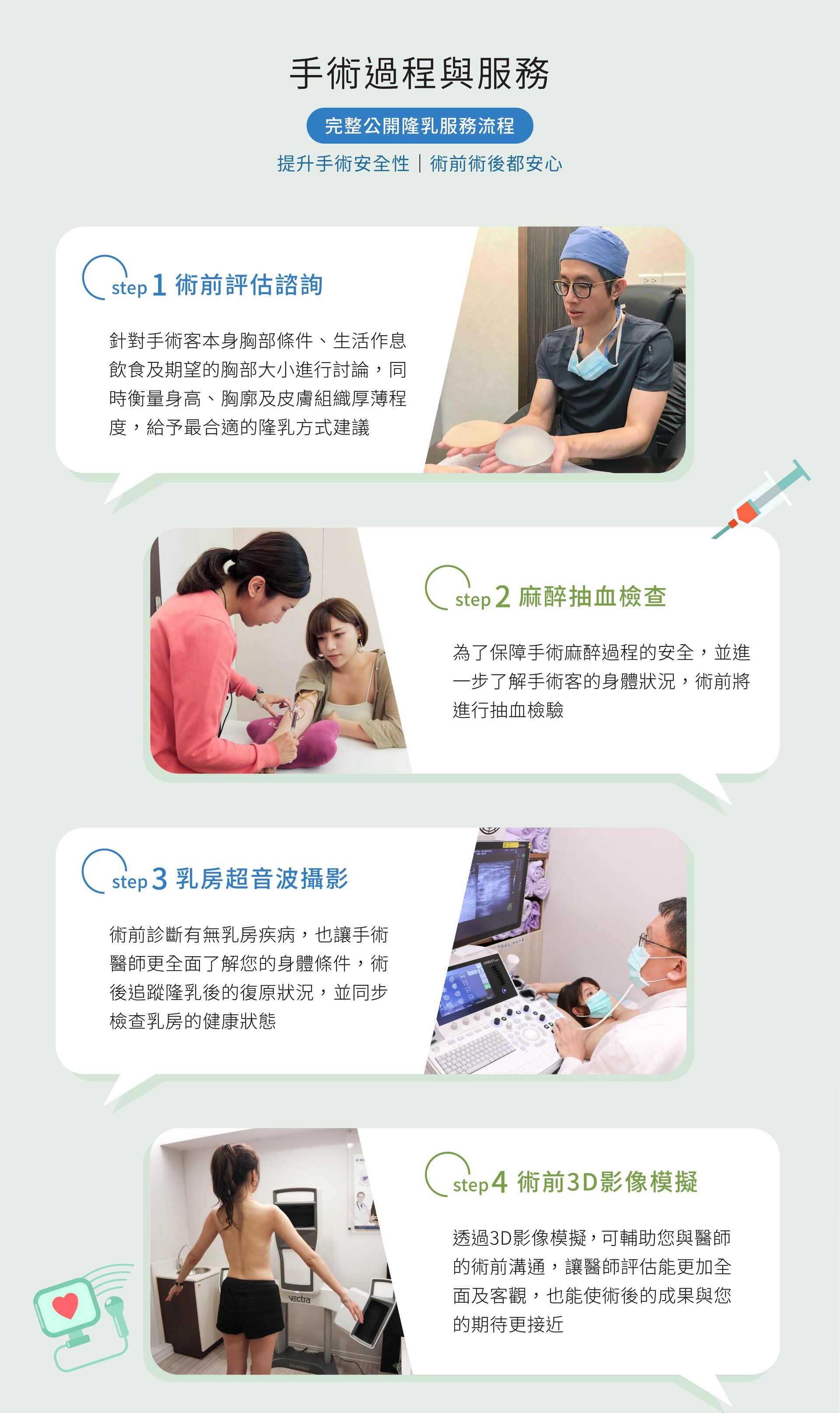 ➢客製化手術計畫:無論是想要深 V 集中、自然水滴,還是針對產後萎縮的修復,邱浚彥總院長與醫師團隊都能根據妳的需求,量身打造最適合的手術方案。