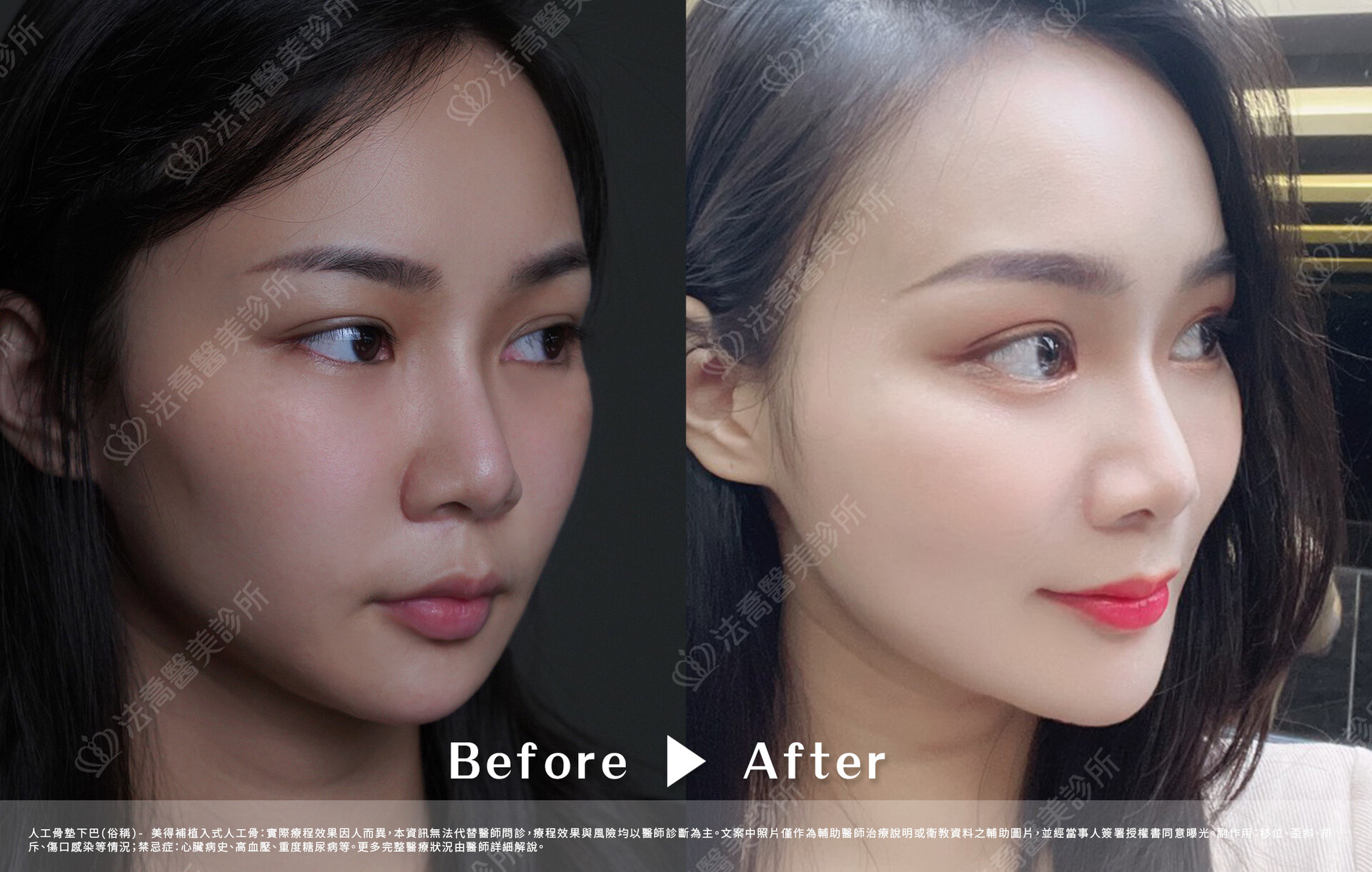 根據傳統的命理觀念裡,下巴的形狀與飽滿度攸關著事業的維持與運勢好壞,墊下巴可以有效的拉長正面臉型,很適合先天下巴短小、大餅臉或嚴重後縮的患者。