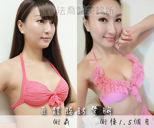 然後提醒大家一個觀念,抽脂豐胸並不會讓妳變成巨乳+骨感名模,它只能雕塑身型唷,例如剛補胸完大概可大1.5個cup,但脂肪會在三個月後穩定…一般都會留失3~5成,當然每個人狀況不一樣,如果沒有照顧好的話也是會消失一大半,等於白做了,所以術後照顧非常重要!