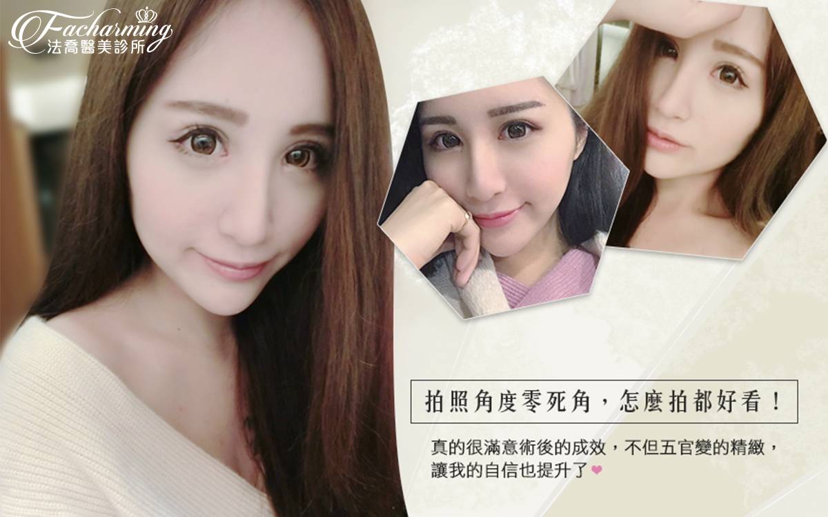 看著鏡子裡的自己,我真的很慶幸自己有勇氣選擇了改變,謝謝法喬醫美診所圓了我的夢想,也帶給我自信。