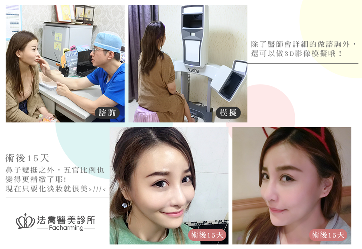 不過…不管怎麼拍感覺就是不對?(咦)萱萱想了很久…原來是我的鼻子肉肉又有點塌塌的,沒有雜誌上面的美女那麼立體啦!為了想讓自己鼻子變漂漂,於是我開始上網找資料,爬文超級多~最後挑選 法喬,不僅有親切的服務,還有 專業的醫生幫我諮詢~邱浚彥院長提到萱萱的鼻子山根比較塌,鼻翼兩側比較肉一點,建議可以做 自體肋骨隆鼻 縮鼻翼 讓五官變得更立體