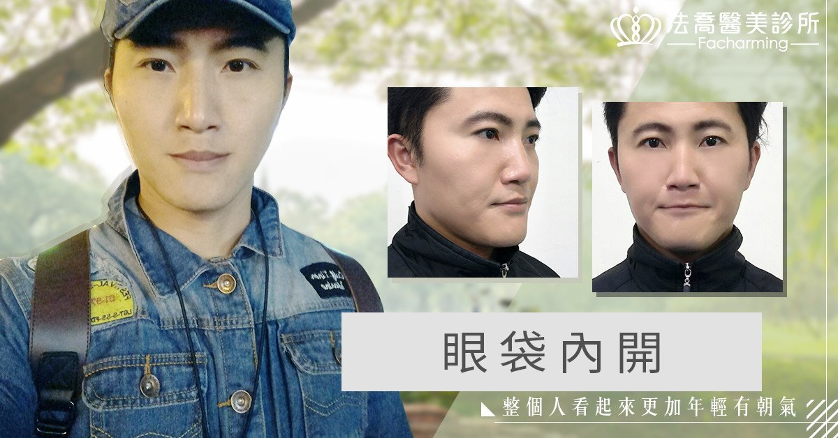 諮詢時,邱院長說我是屬於「年輕型眼袋」,雖然覆蓋於表面的眼輪匝肌及皮膚有點失去彈性,但因為鬆弛的程度還不算太嚴重,所以「內開式下眼袋脂肪移位」就能一次改善眼袋及淚溝問題!