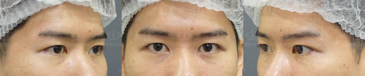 - 術後眼睛不自然 、 兩眼不對稱:術後可能因腫脹或疤痕問題,造成兩眼暫時性的不自然或不對稱,建議等 3至 6 個月,待疤痕軟化或完全消腫再做最後評估,通常雙眼不對稱需要進行二次修復的機率為 5%,人的器官多有天生性生理不對稱,加上大多是疤痕收縮造成。此為不可控制之因素,病患並無法要求雙眼 一定必須 100 %完全對稱 。