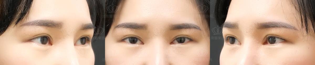 - 術後眼睛不自然 、 兩眼不對稱:術後可能因腫脹或疤痕問題,造成兩眼暫時性的不自然或不對稱,建議等 3至 6 個月,待疤痕軟化或完全消腫再做最後評估,通常雙眼不對稱需要進行二次修復的機率為 5%,人的器官多有天生性生理不對稱,加上大多是疤痕收縮造成。此為不可控制之因素,病患並無法要求雙眼 一定必須 100 %完全對稱 。