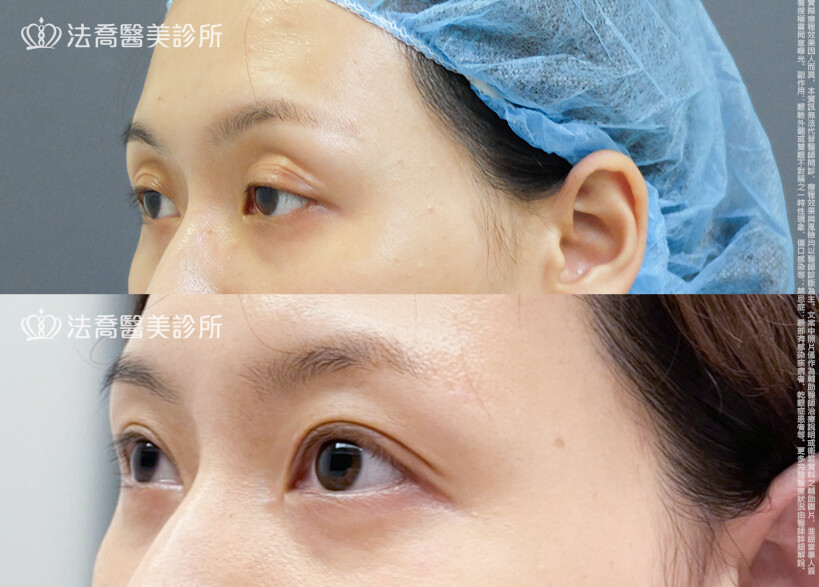 - 割雙眼皮併眼瞼肌提拉術因同時處理眼皮摺痕與提眼眼肌,術後可能會出現暫時性上眼皮閉合不全之情況。