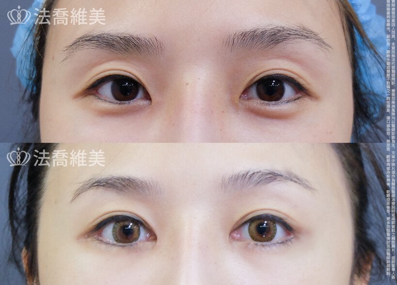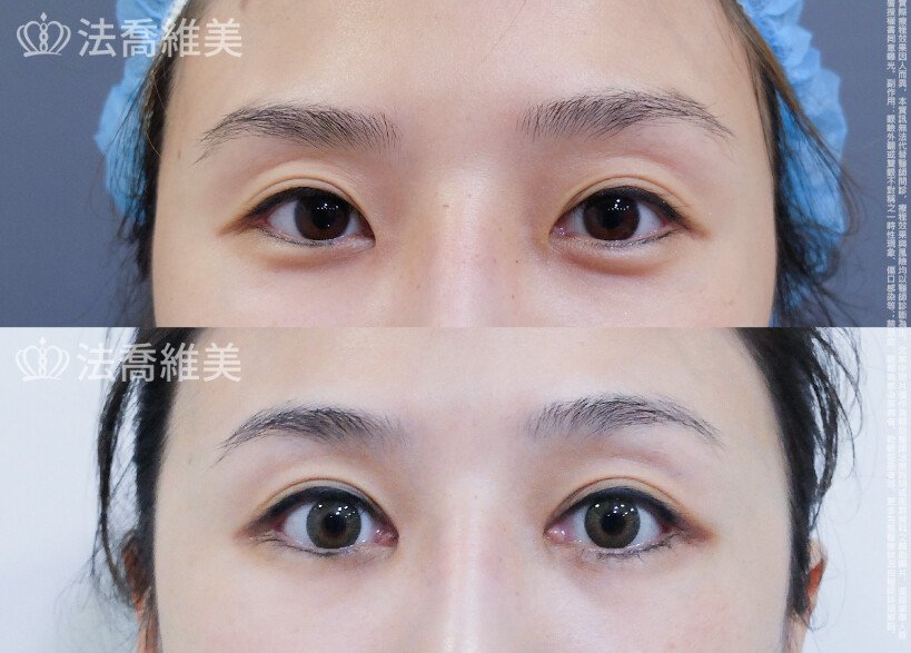 - 術後眼睛不自然 、 兩眼不對稱:術後可能因腫脹或疤痕問題,造成兩眼暫時性的不自然或不對稱,建議等 3至 6 個月,待疤痕軟化或完全消腫再做最後評估,通常雙眼不對稱需要進行二次修復的機率為 5%,人的器官多有天生性生理不對稱,加上大多是疤痕收縮造成。此為不可控制之因素,病患並無法要求雙眼 一定必須 100 %完全對稱 。