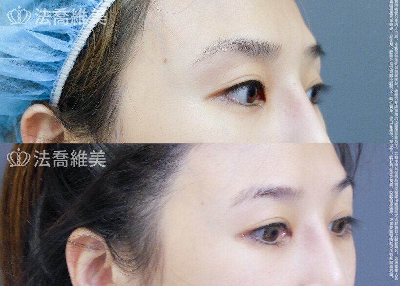 - 割雙眼皮併眼瞼肌提拉術因同時處理眼皮摺痕與提眼眼肌,術後可能會出現暫時性上眼皮閉合不全之情況。