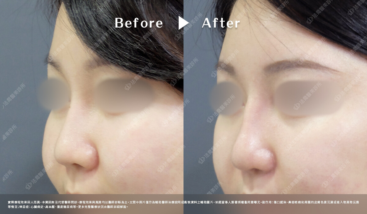 - 凹凸不平︰若本身皮膚過薄或是之前植入矽膠鼻模造成皮膚過薄及莢膜形成,較易有不平整的 現象,可經手術再微調。