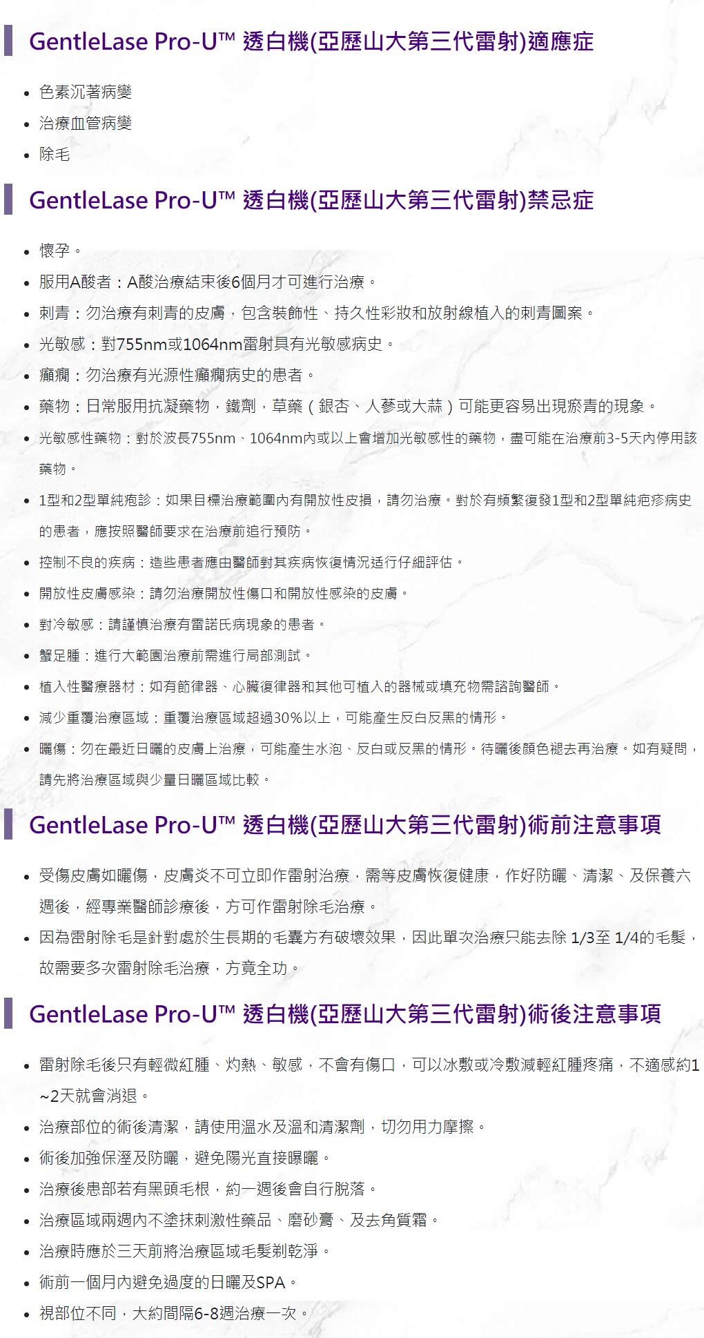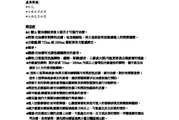 亞歷山大第三代除毛雷射機適應症及禁忌症