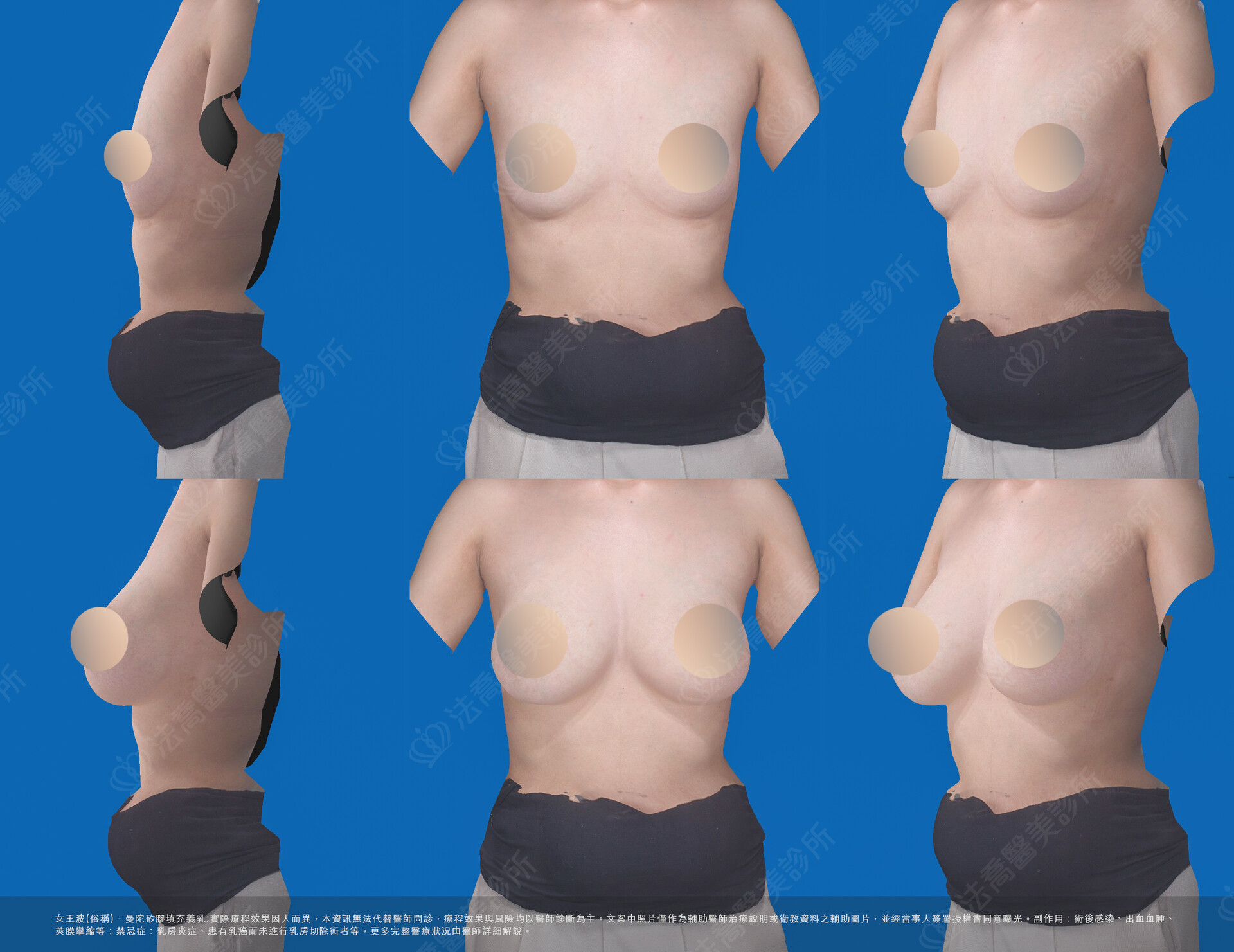- 出血血腫、乳頭與乳房皮膚感覺異常、莢膜攣縮、兩邊不對稱、術後感染等情況。