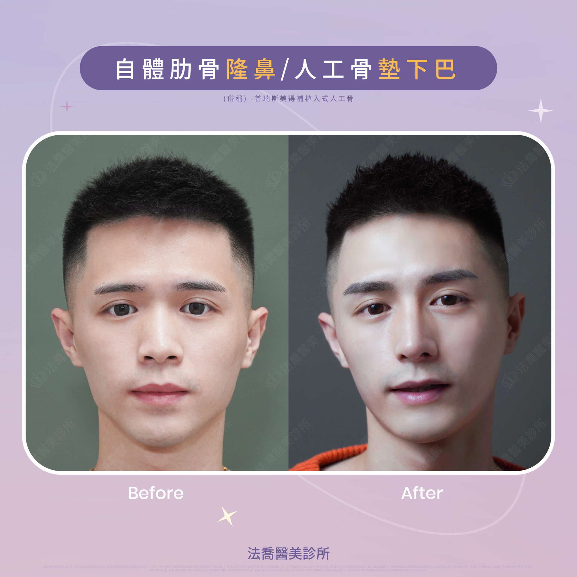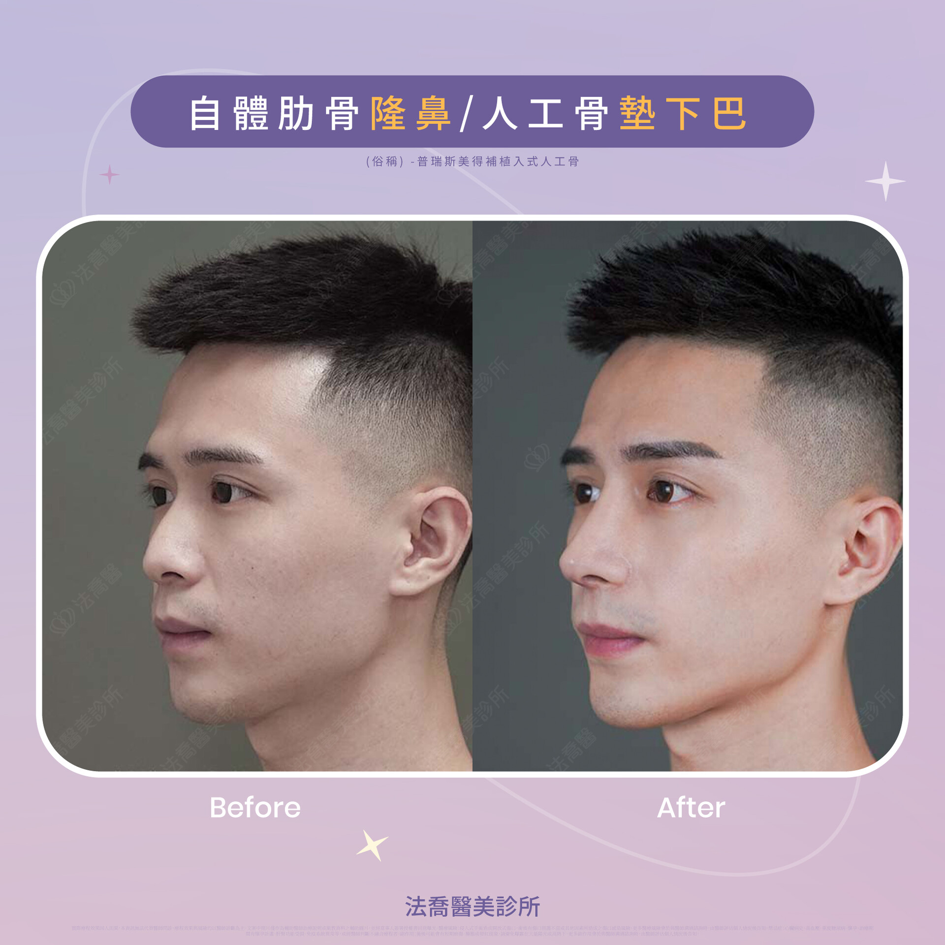 👨⚕️醫師也表示,自體肋骨隆鼻結合人工骨墊下巴,是目前較多男性最終選擇同時進行的手術療程,這樣的手術規劃能為患者提供一條改善外貌與自信的捷徑,並且預測這樣的手術組合在未來將會更加普及並受到廣泛青睞,因為這不僅僅是外表上的變化,更是男性對於自我形象及生活品質追求的一種新表達。
