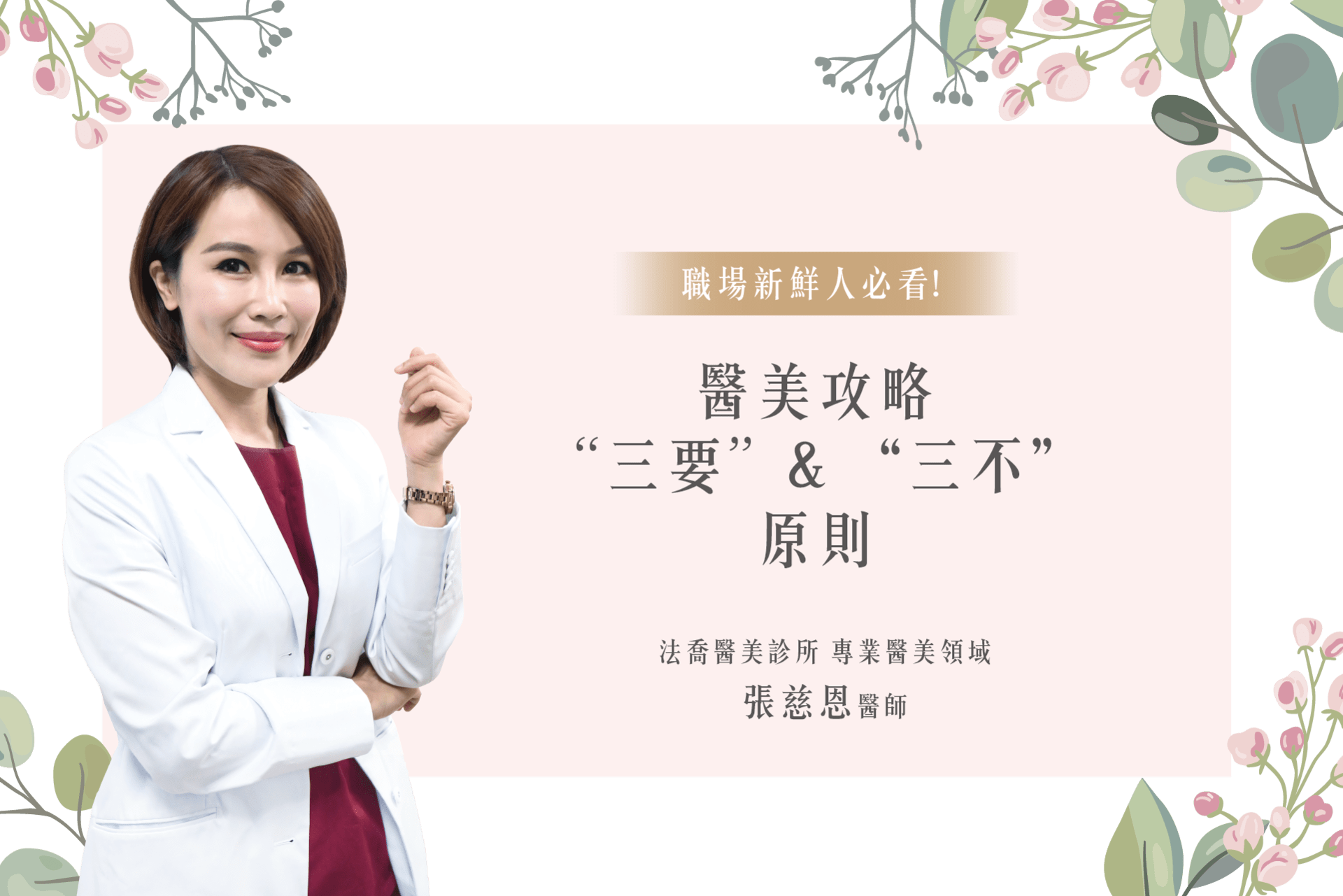 職場新鮮人必看! 醫美攻略之〖三要〗 & 〖三不〗原則作者:張慈恩醫師 畢業季節來臨,一波畢業生終於要踏出校園,邁入職場! 進入職場前,一定會需要經過面試來爭取工作機會,而面試通常取決於第一印象,這時面貌就是最大的加分題了。 [以貌取人]是歷久不變的事實 耶魯大學經濟學家Daniel Hamermesh在著作<Be …on- Fri, 17 Jul 2020- READ MORE - -