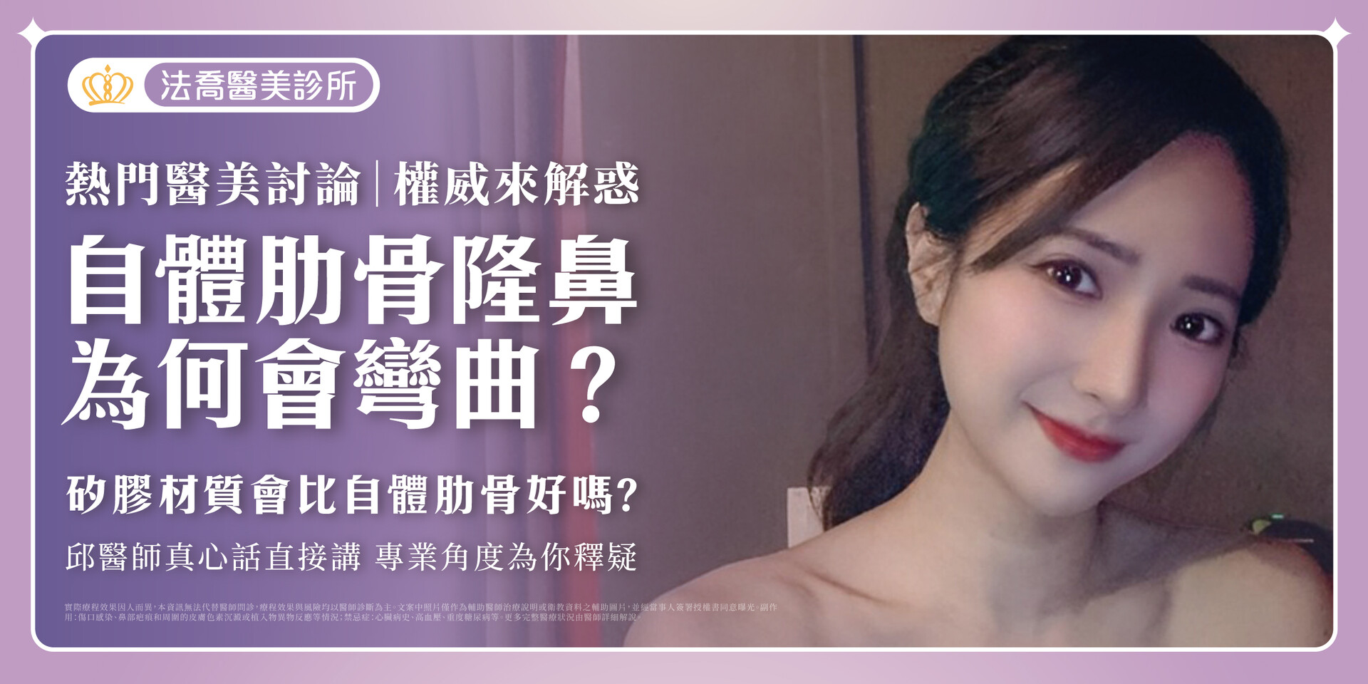 -  ![]() 自體肋骨隆鼻有機會彎曲!?隆鼻權威邱浚彥醫師來解惑! 有機率自然彎曲的天然材質 自體肋骨在術後有可能發生彎曲的機率,約3-5%,但以矽膠隆鼻來說,其併發率(感染、紅腫、歪曲等)也有10%。 結論:凡手術都有一定風險,建議術後定期回診,若於早期發現自體肋骨隆鼻後有彎曲,則可及時安排 …on- Fri, 01 Mar 2024- READ MORE - 自體肋骨隆鼻有機會彎曲!?隆鼻權威邱浚彥醫師來解惑! 有機率自然彎曲的天然材質 自體肋骨在術後有可能發生彎曲的機率,約3-5%,但以矽膠隆鼻來說,其併發率(感染、紅腫、歪曲等)也有10%。 結論:凡手術都有一定風險,建議術後定期回診,若於早期發現自體肋骨隆鼻後有彎曲,則可及時安排 …on- Fri, 01 Mar 2024- READ MORE -