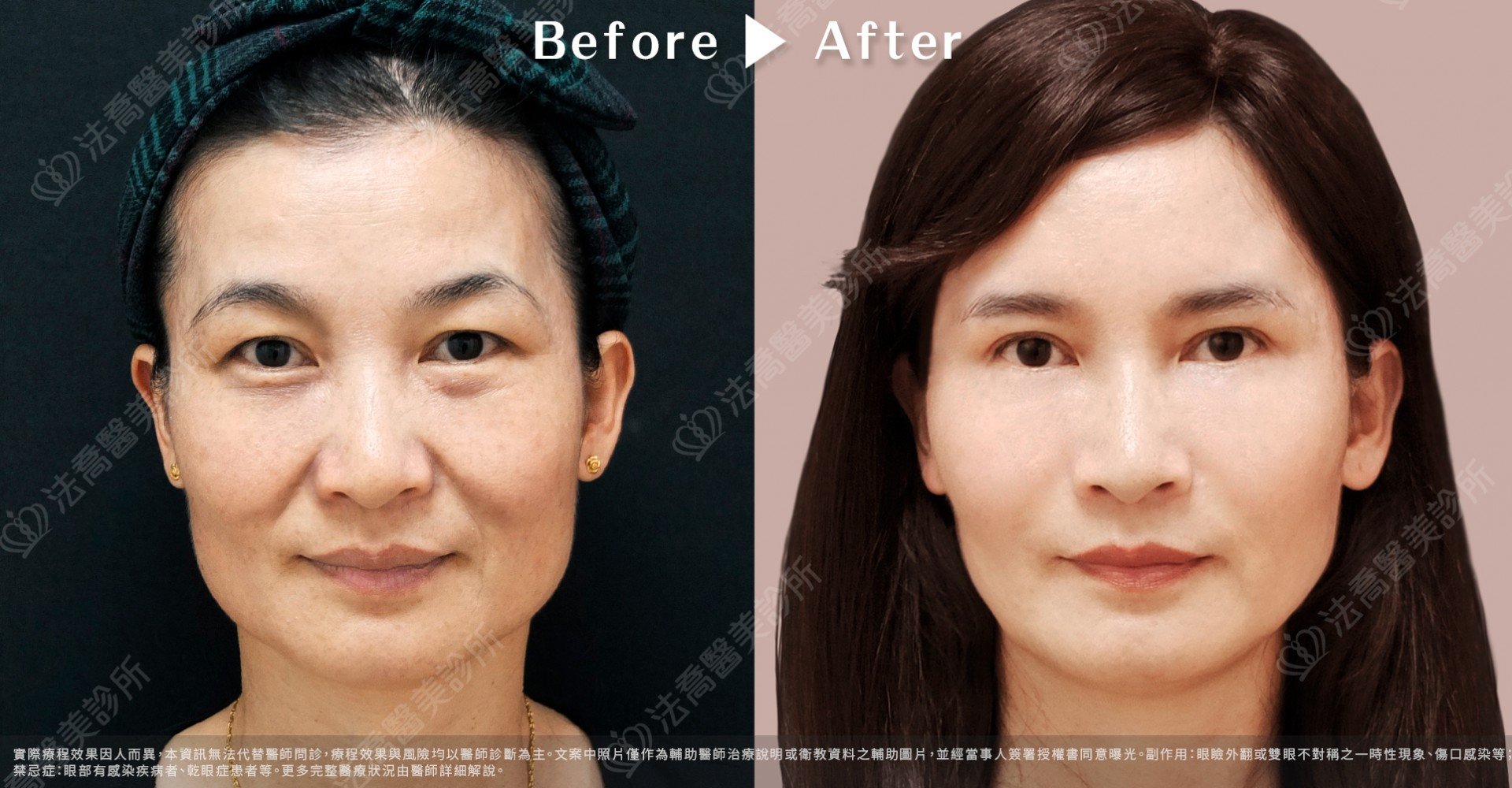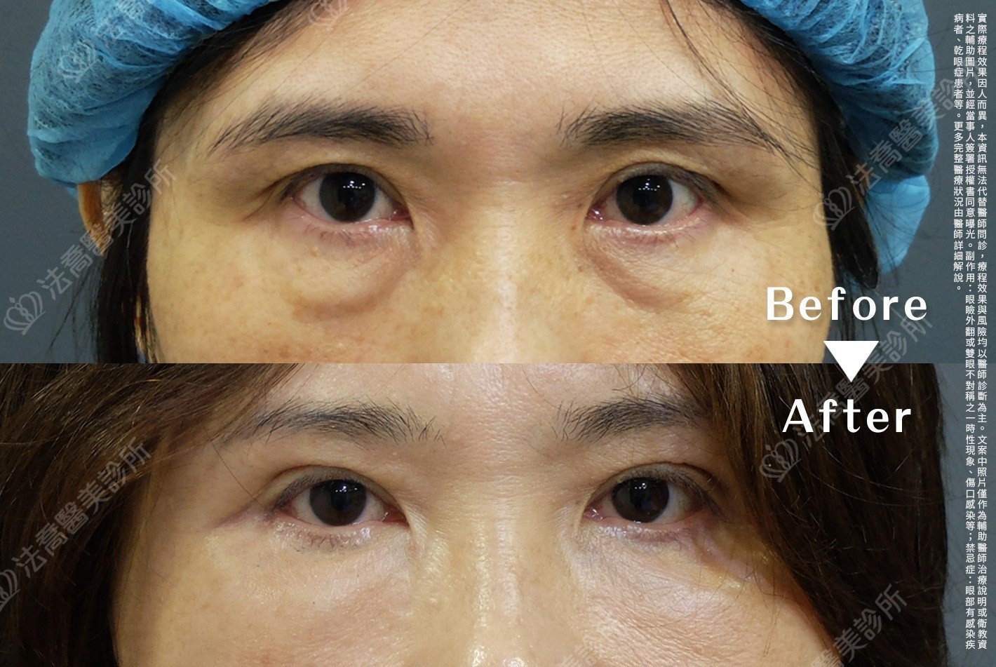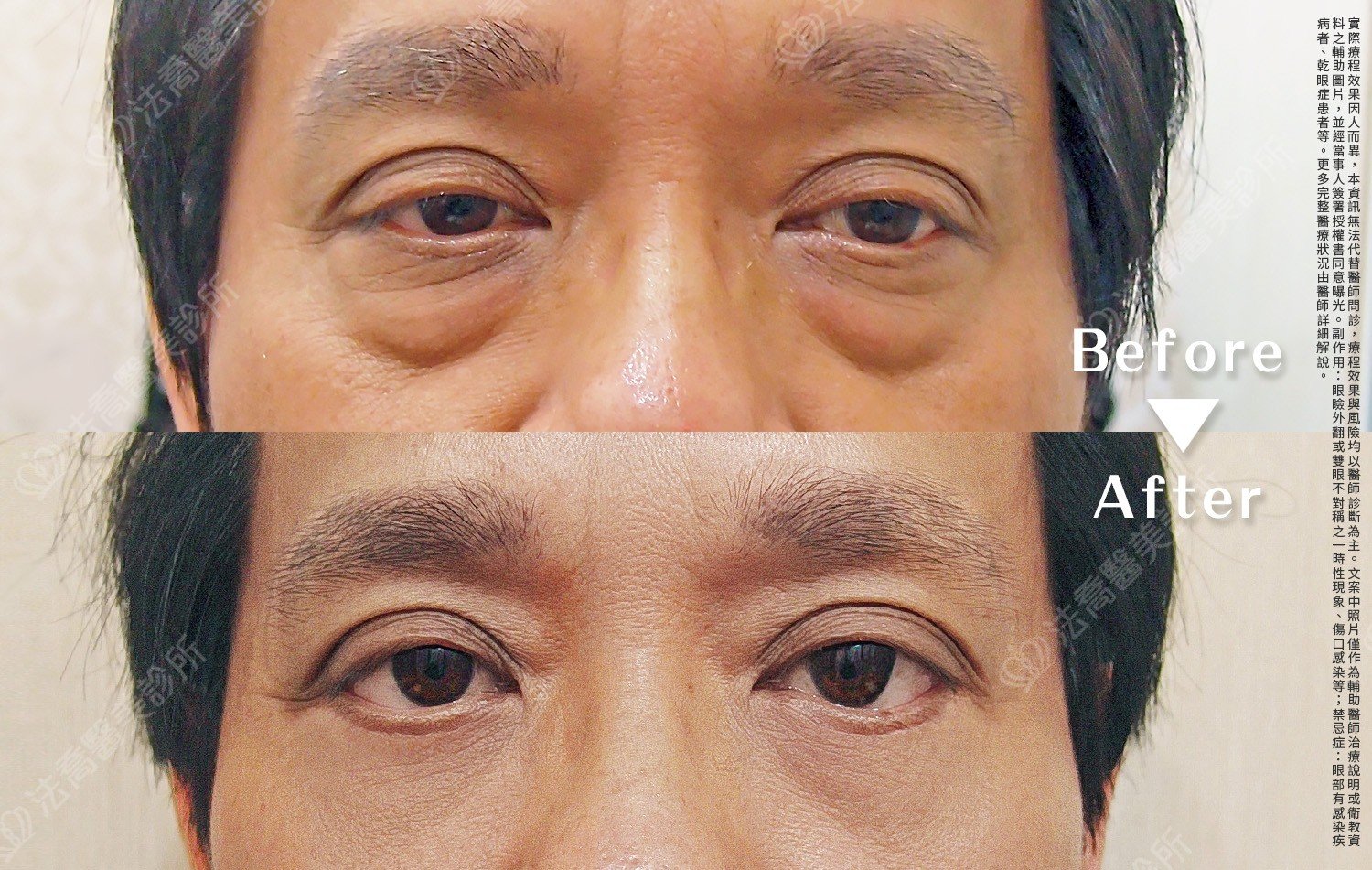 - 將原本的眼袋脂肪移位或移除,效果明顯。
