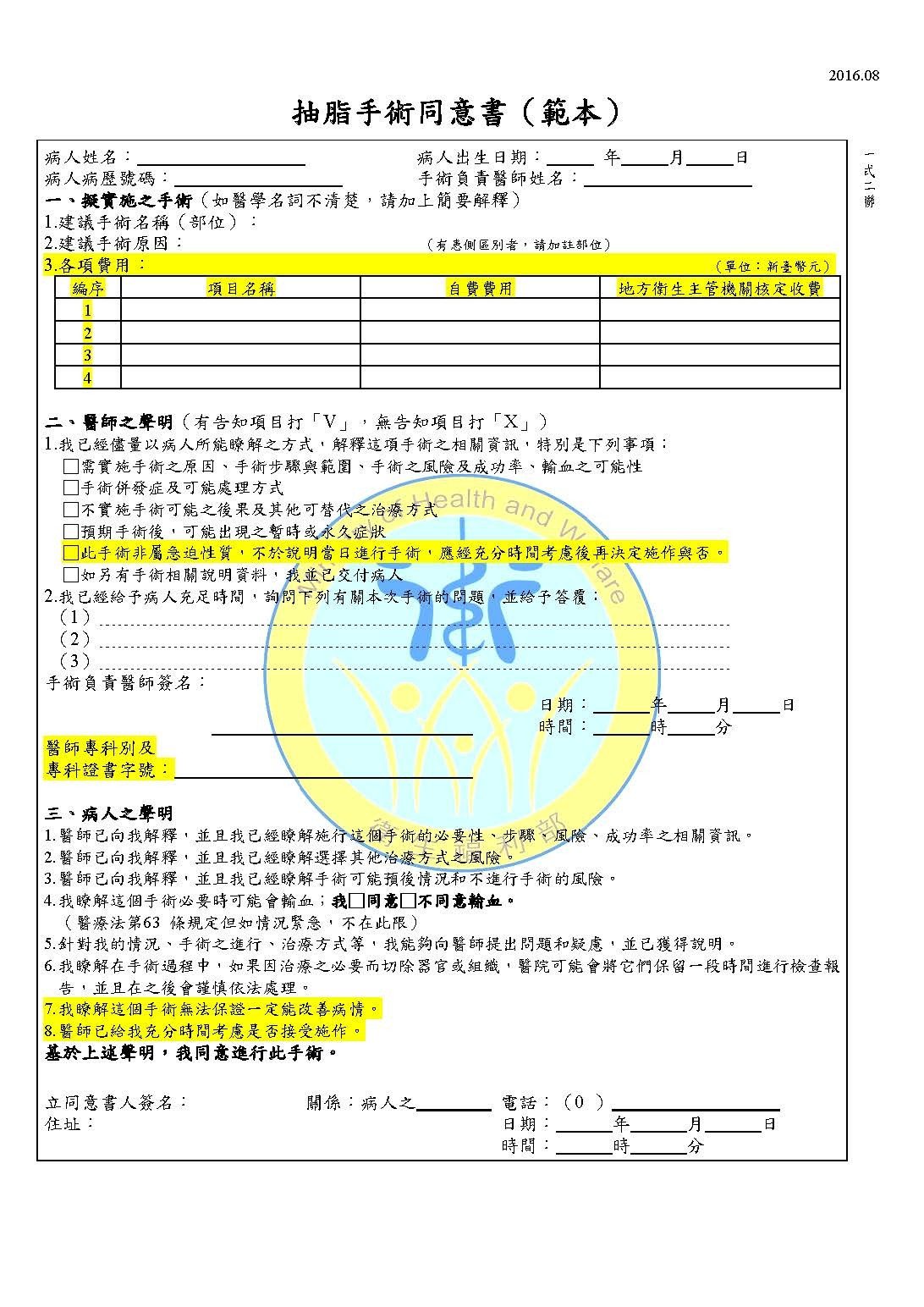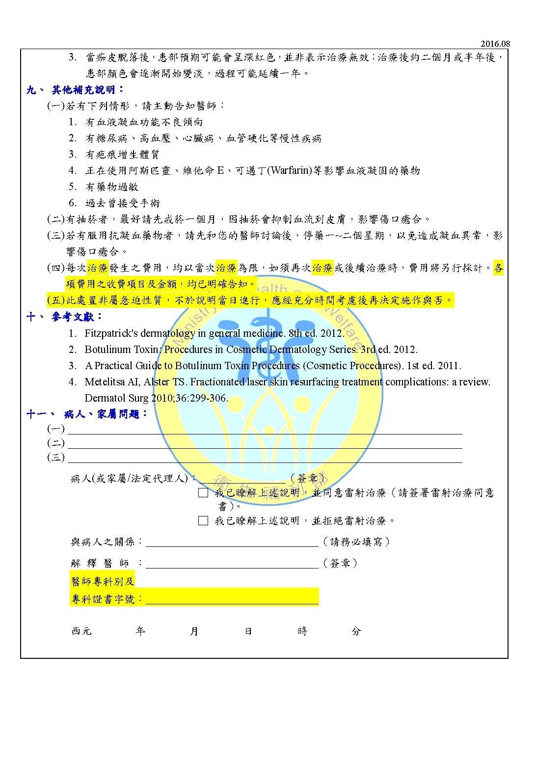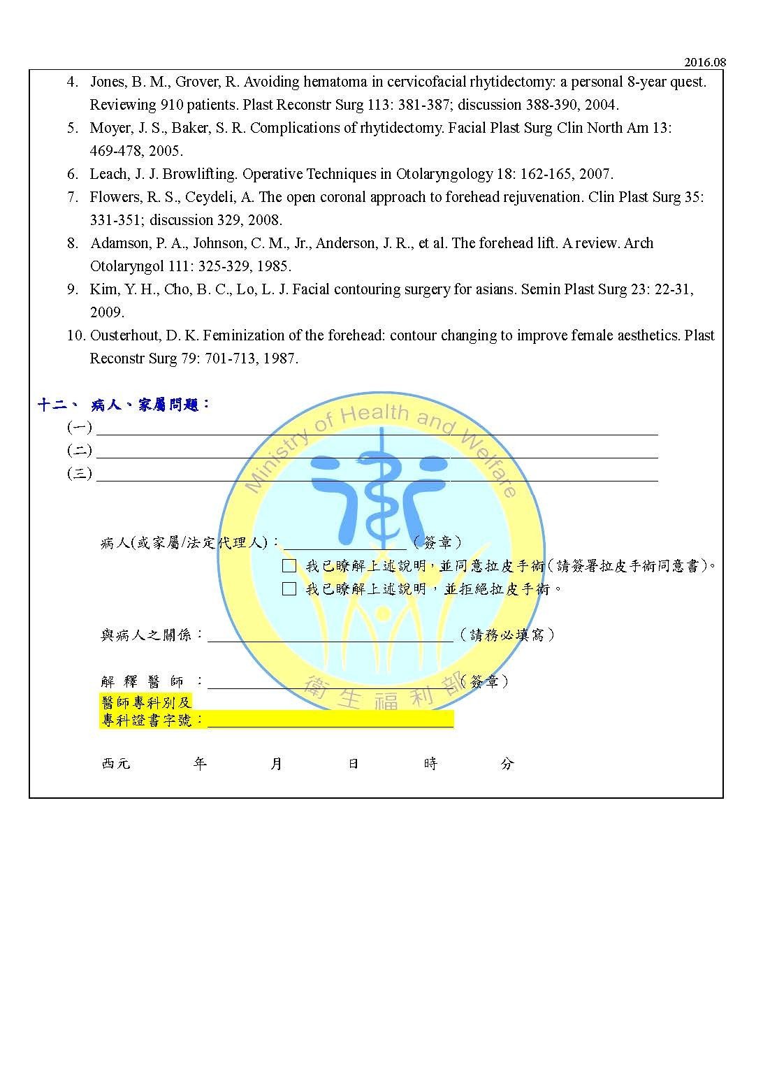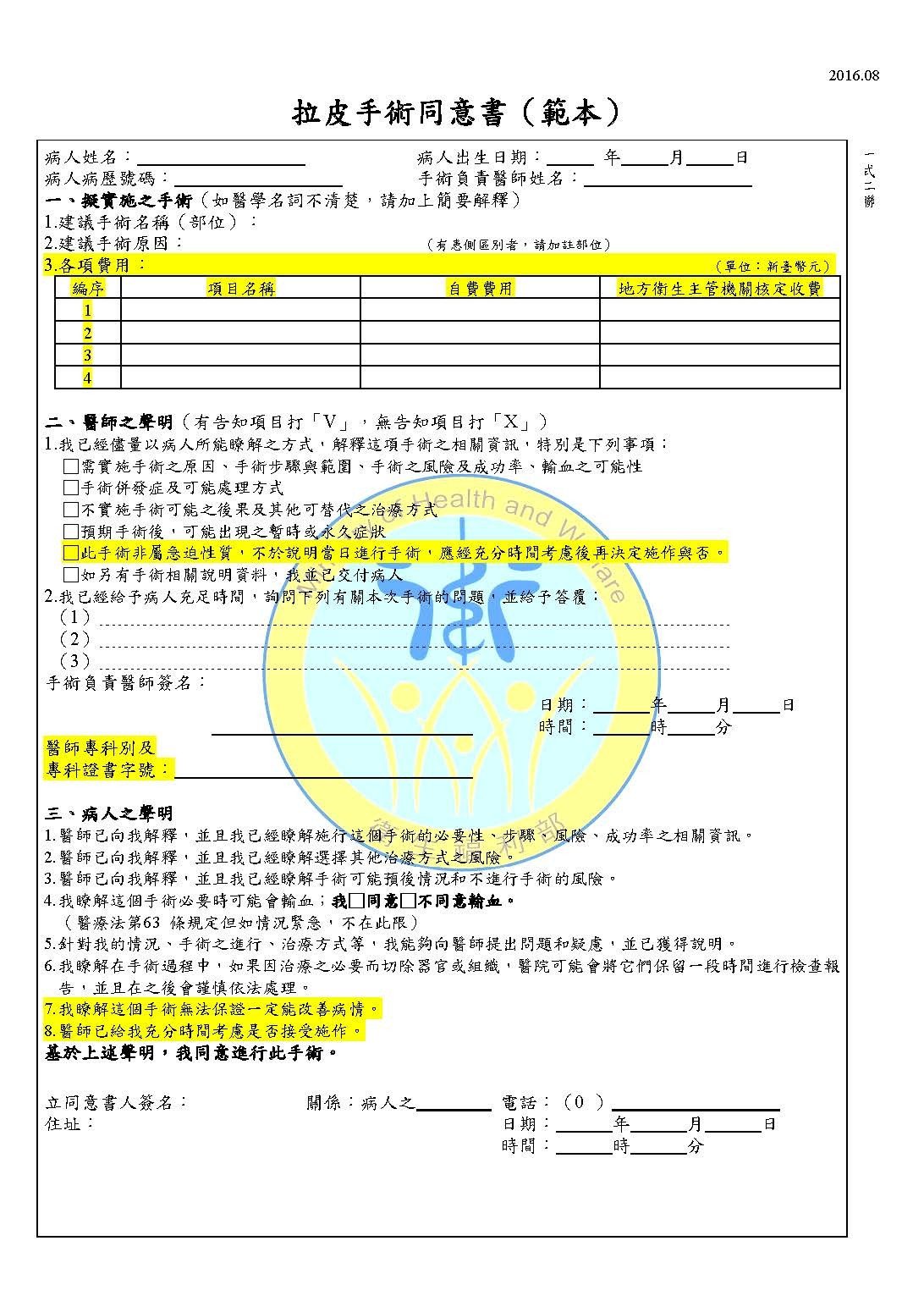 行政院衛生福利部2013/01/04公告:「『美容醫學』一般係指由專業醫師透過醫學技術,如:手術,藥物,醫療器械,生物科技材料等,執行具侵入性或低侵入性醫療本 網站之相關案例照片皆經簽署肖像權並同意發表,效果因人而異。根據衛部醫字第1031660048號,衛署醫字0990262180號,衛部醫字第1031662939號處理,宣傳名稱與仿單不盡相同(標籤外使用);任何療程介紹均以醫師“足以說明”為準,請特別留意。