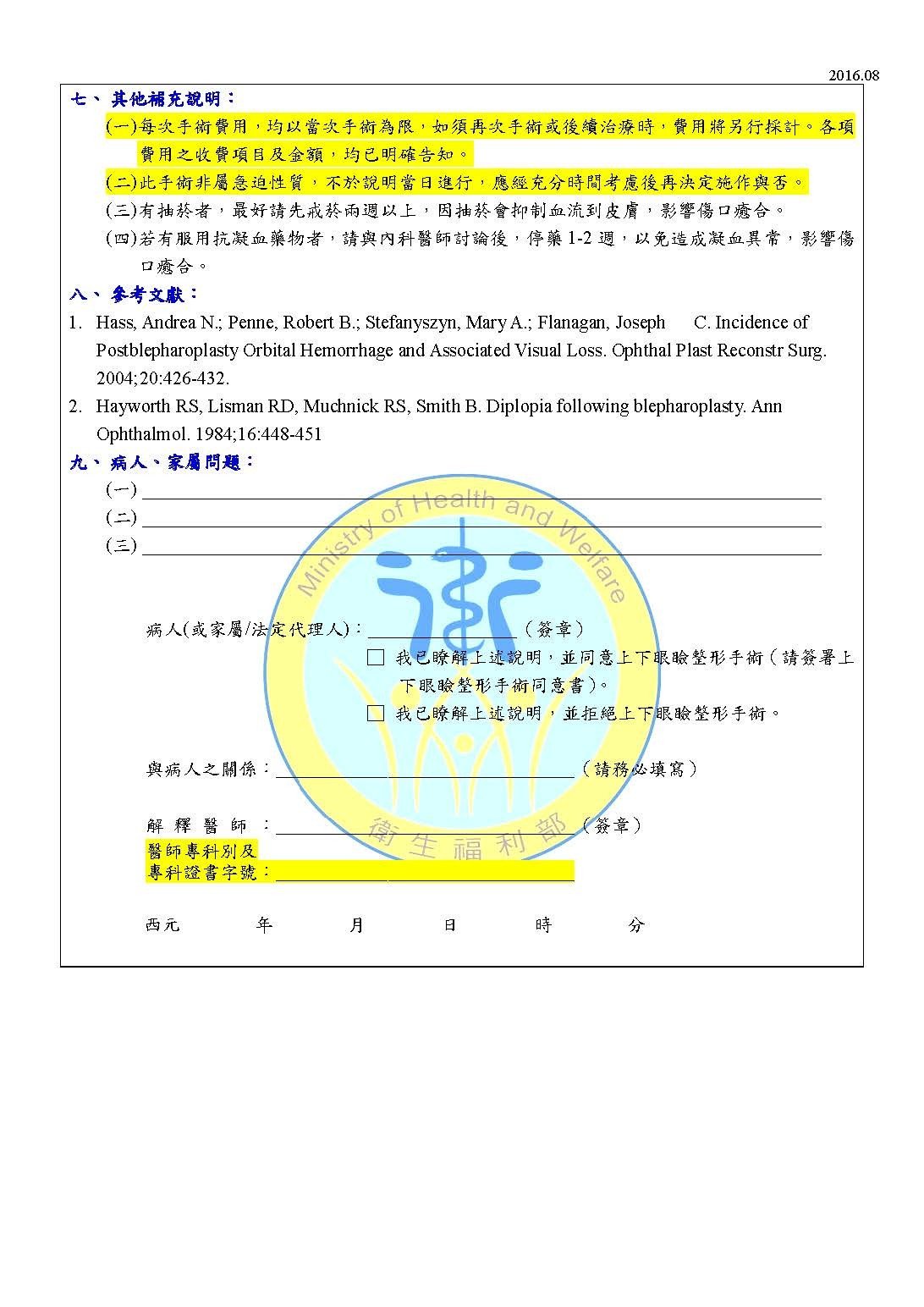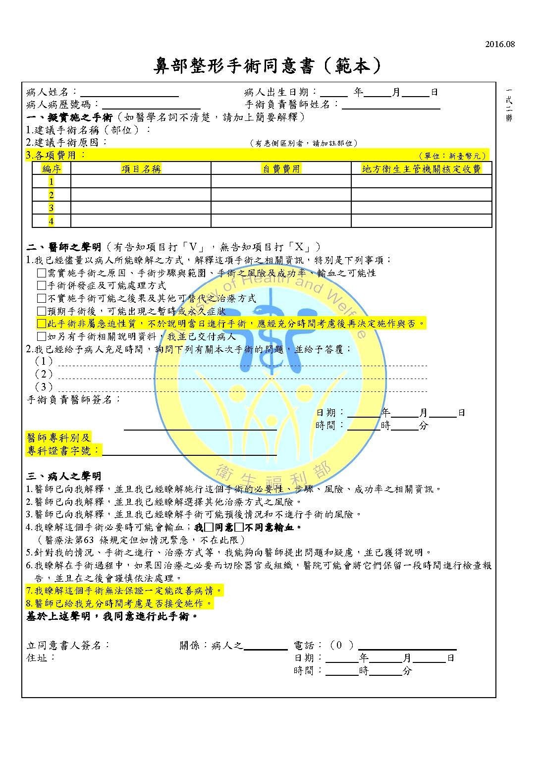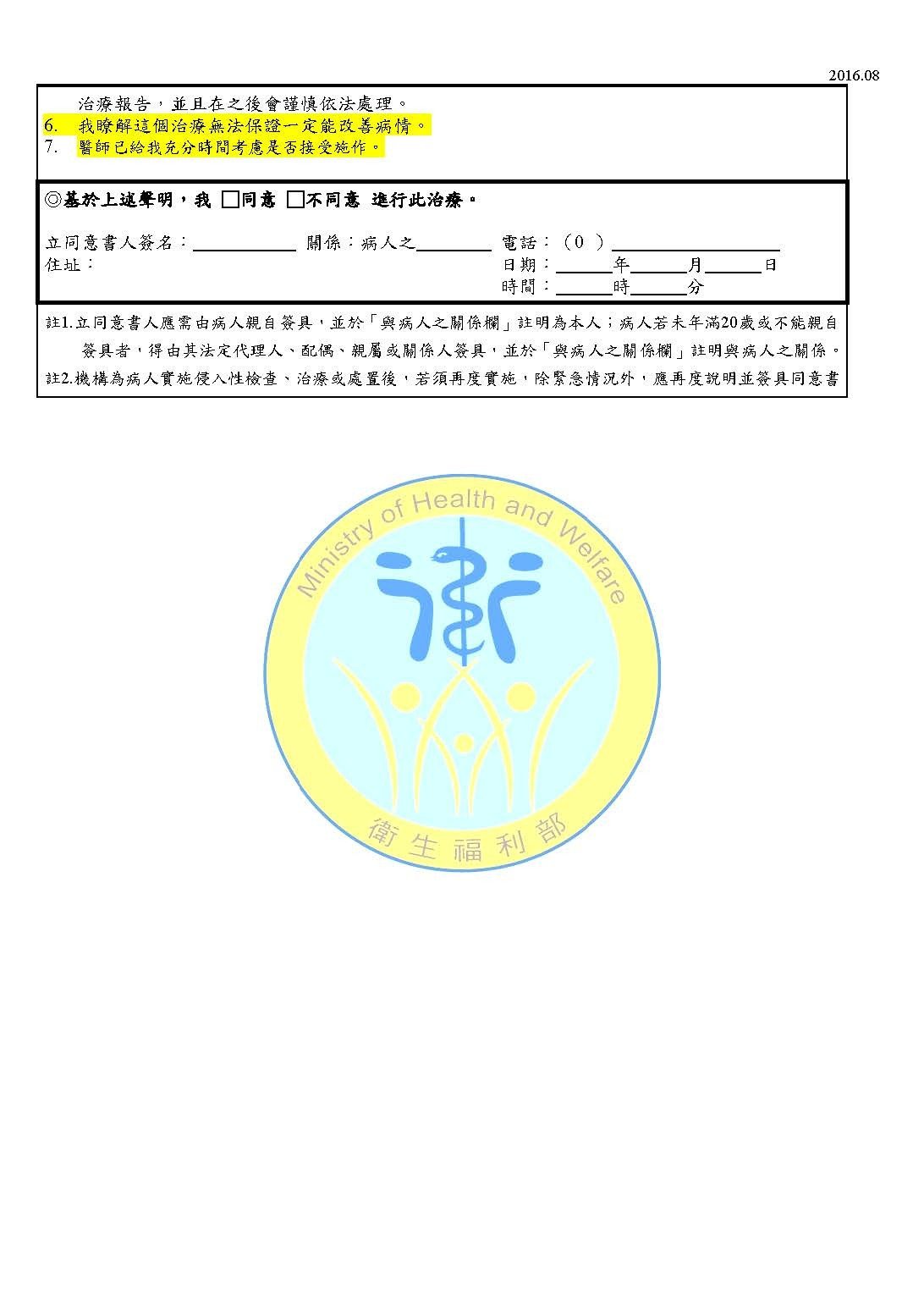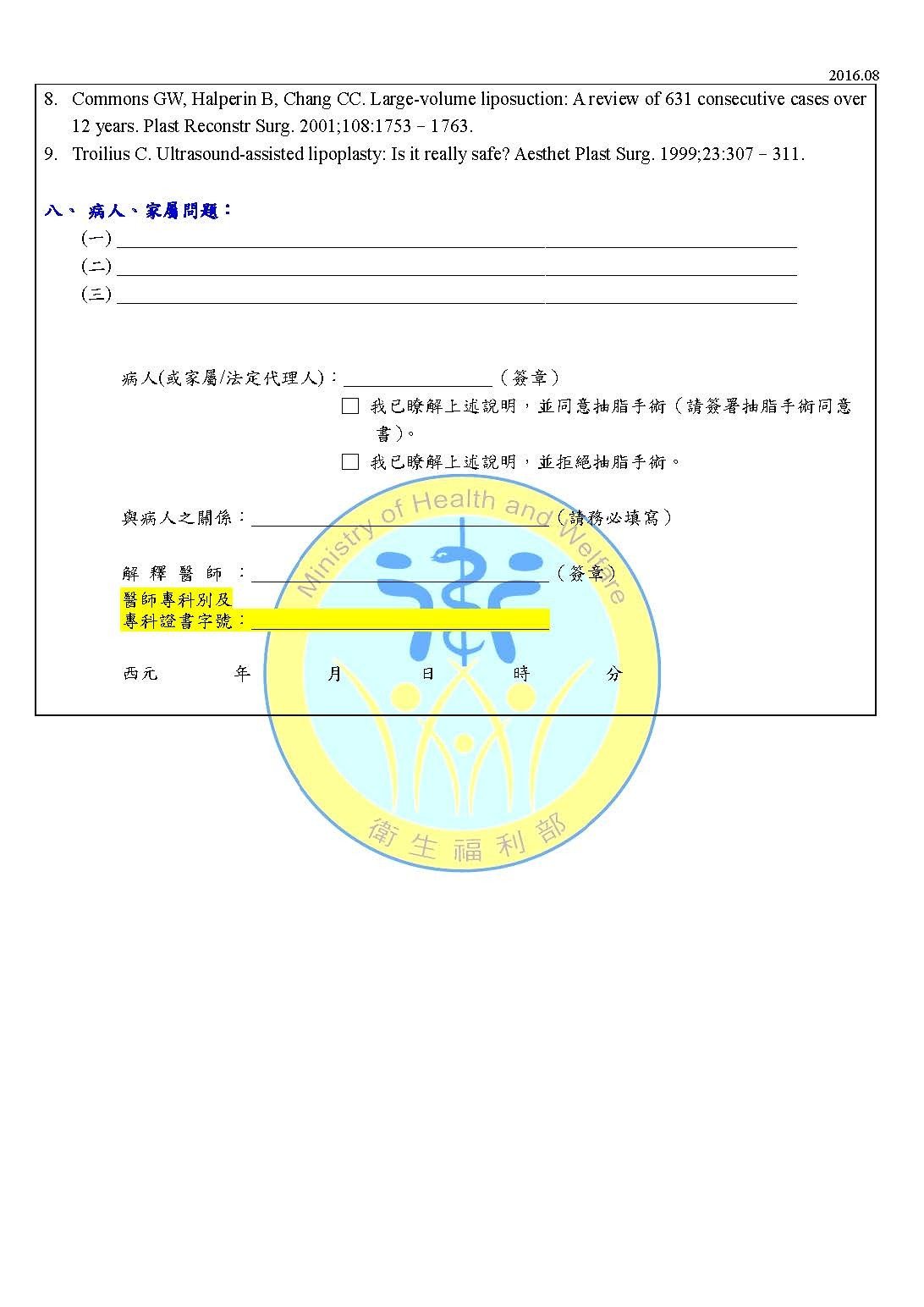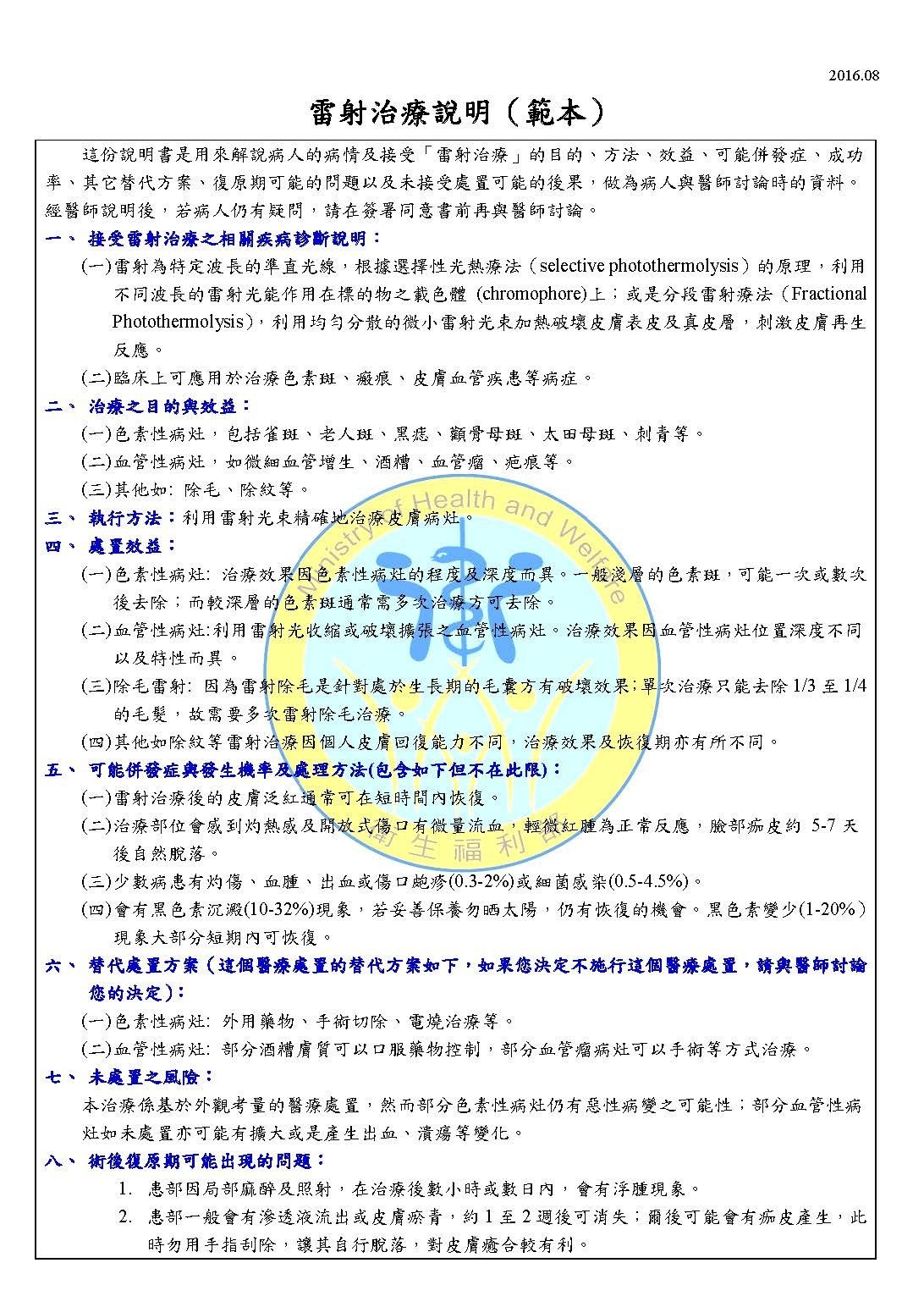 行政院衛生福利部2013/01/04公告:「『美容醫學』一般係指由專業醫師透過醫學技術,如:手術,藥物,醫療器械,生物科技材料等,執行具侵入性或低侵入性醫療本 網站之相關案例照片皆經簽署肖像權並同意發表,效果因人而異。根據衛部醫字第1031660048號,衛署醫字0990262180號,衛部醫字第1031662939號處理,宣傳名稱與仿單不盡相同(標籤外使用);任何療程介紹均以醫師“足以說明”為準,請特別留意。