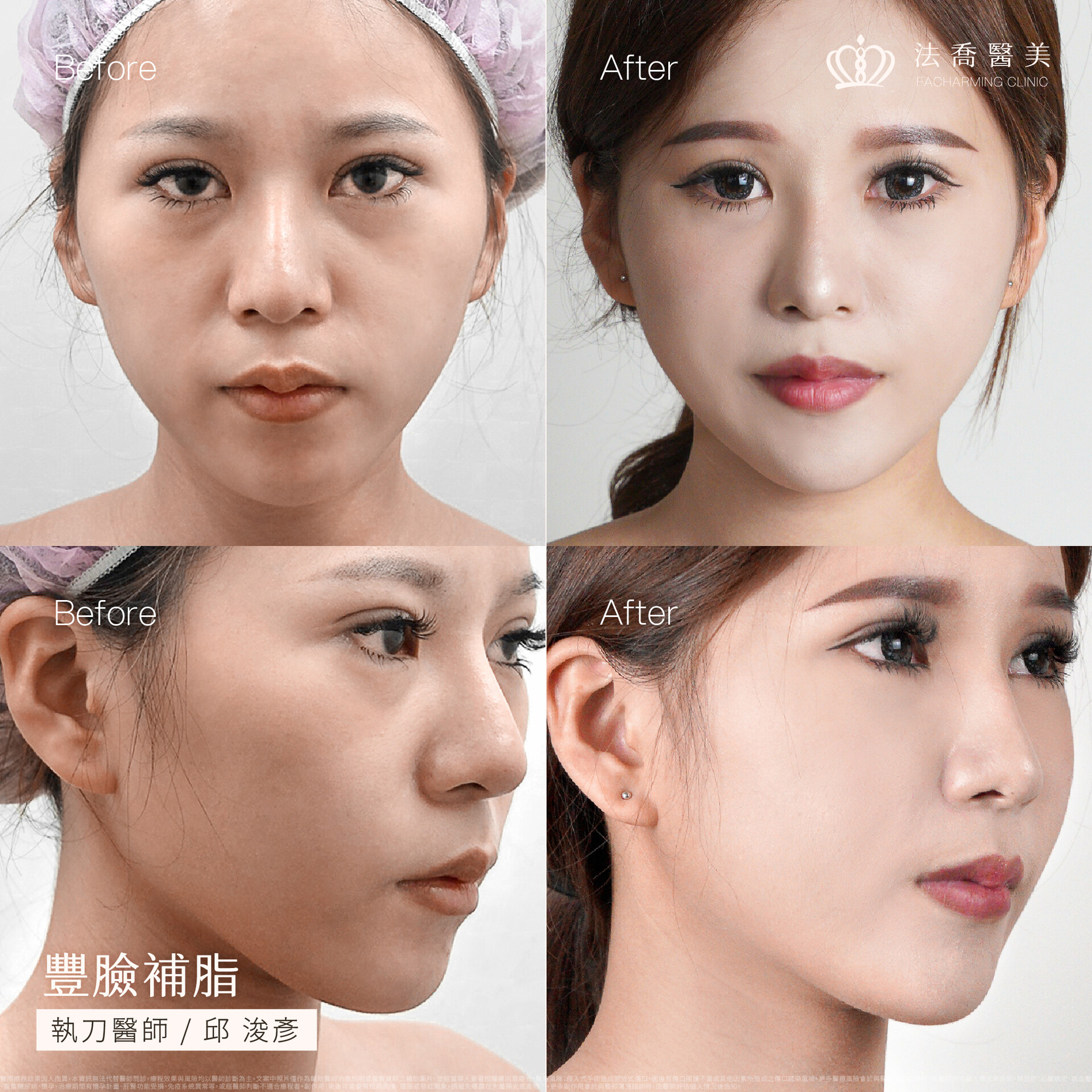 ●手術特點:抽取自身多餘脂肪(如大腿、腹部),經過專業處理後,精準填補至臉部凹陷處。用「自體軟黃金」重新撐起臉部的圓潤立體感,打造柔和、甜美的「好命貴婦顏」。